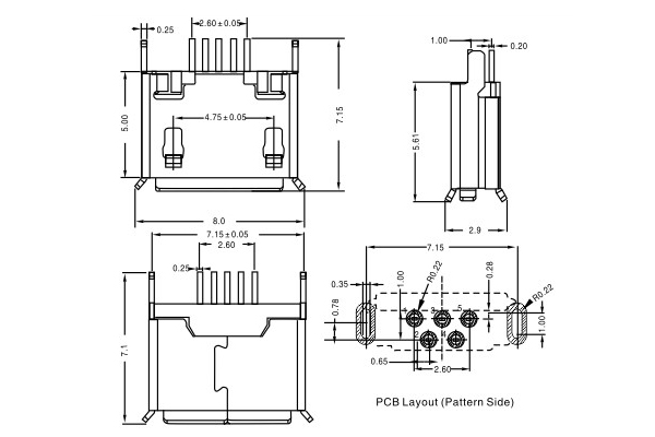 USB2.0连接器Micro 5P 180度直插
